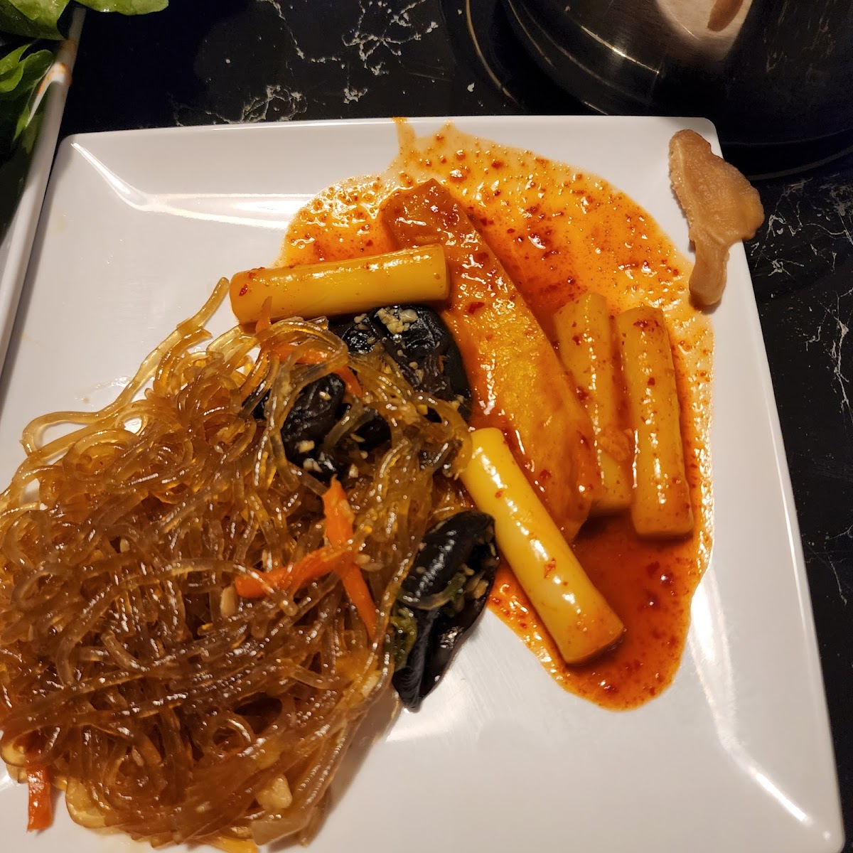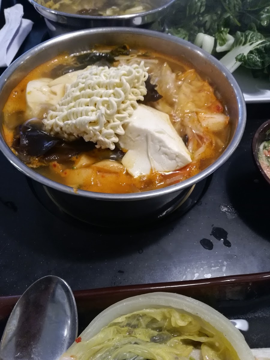 Hot pot enthusiasts will appreciate the wide range of ingredients available. Whether you're in the mood for prime beef, seafood, or a variety of vegetables, the hot pot offers the perfect cooking experience. The pork bone broth is a customer favorite for its rich flavor, and you can choose to add noodles, mushrooms, or even Japchae to your pot for added texture and taste.