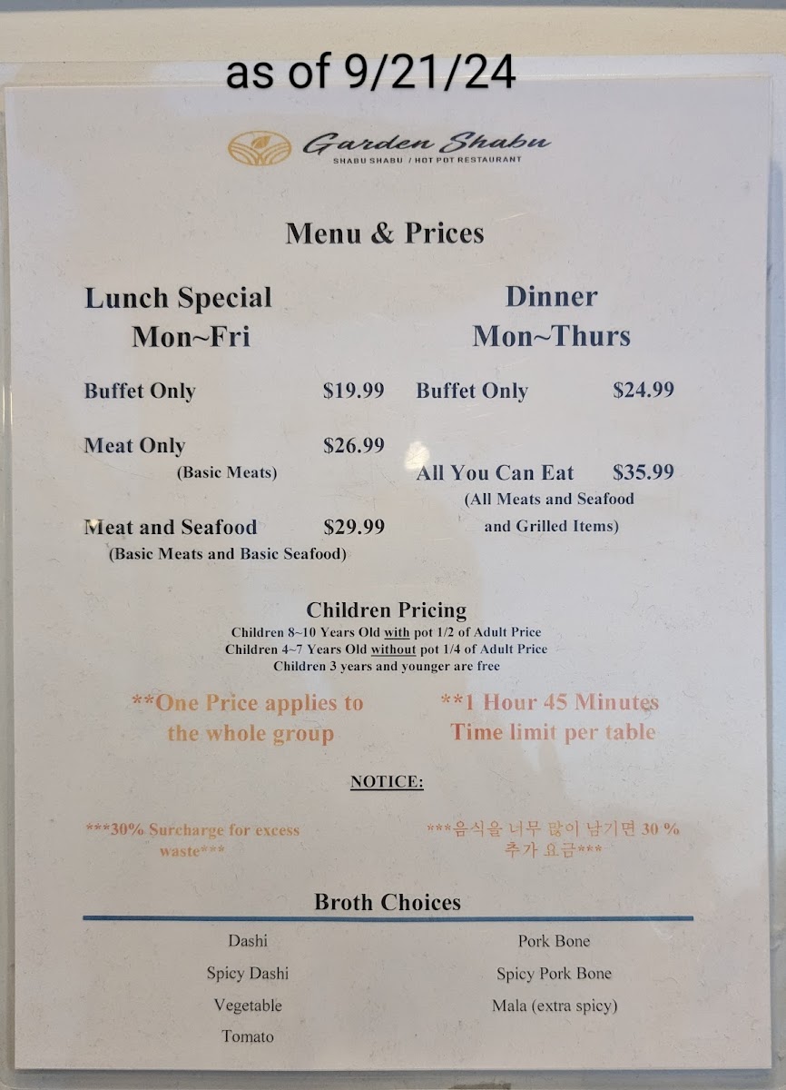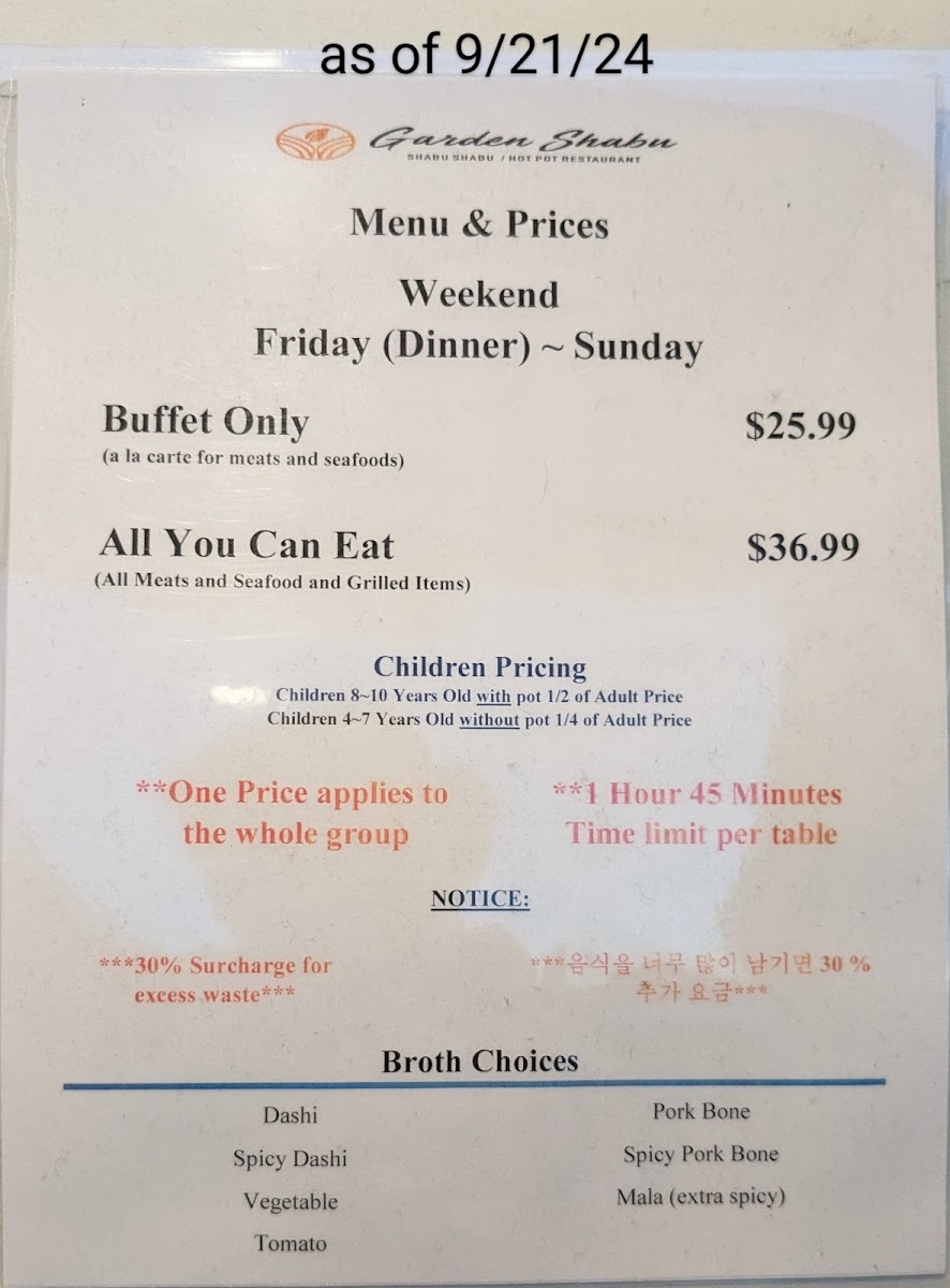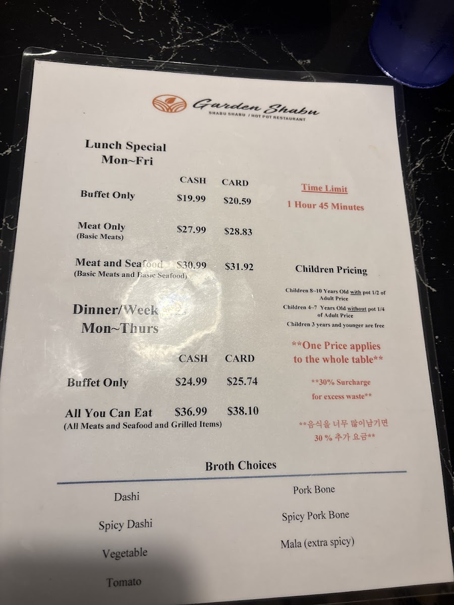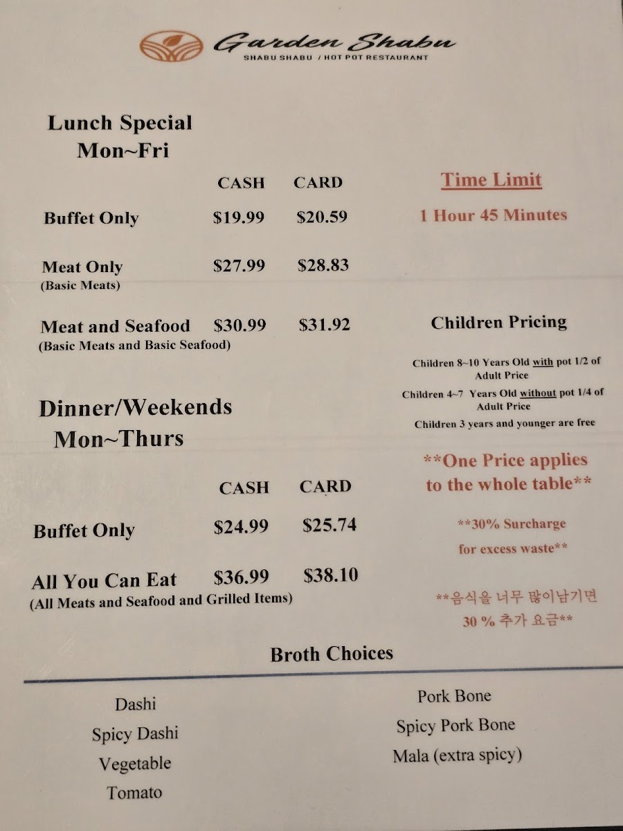 Explore the Delicious Garden Shabu/Hot Pot & Grill Menu