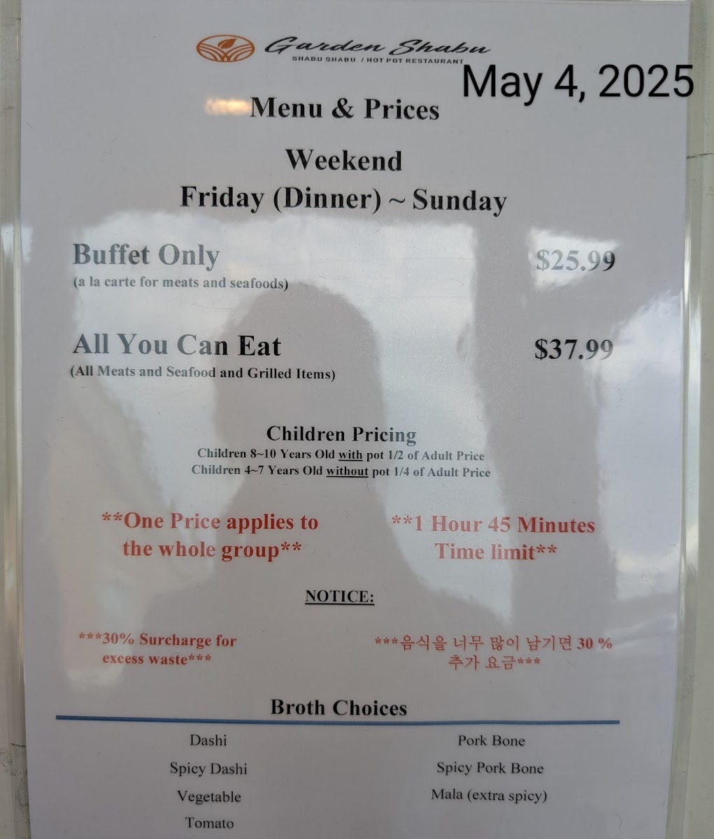 Garden Shabu/Hot Pot & Grill, where a culinary adventure awaits you at our cozy spot on 1 Valley Rd, Little Ferry, NJ 07643! Our menu is a delightful fusion of flavors, featuring mouthwatering specialties like our tender Prime Beef, delectable seafood combos, and a vibrant Veggie Bar to complement your meal. Dive into our comforting Hot Pot options, enhanced by our rich Pork Bone Broth or try your hand at My Hot Pot experience, letting you craft the perfect dish. Don’t forget to explore our delightful Kimchi Bar and treat yourself to our sweet Shaved Ice for dessert. Whether you're in the mood for savory Japchae or fresh sushi on the weekend, there’s something for everyone to savor. Bring your friends and family, and let the flavorful exploration begin!